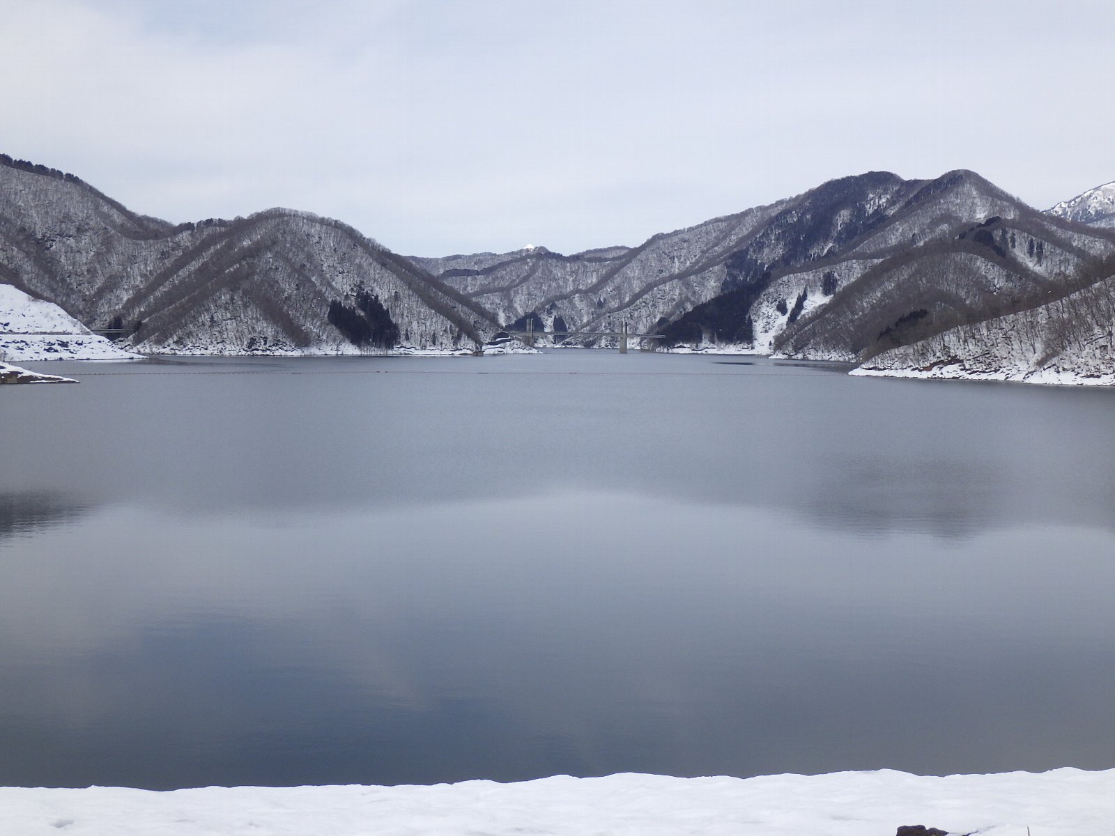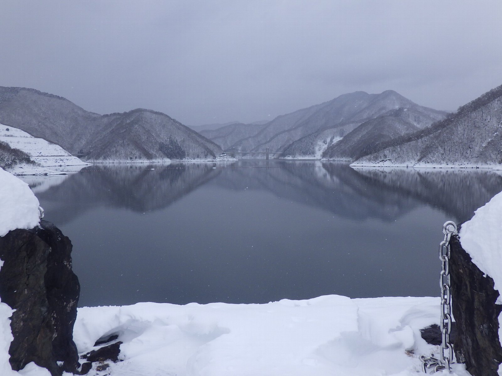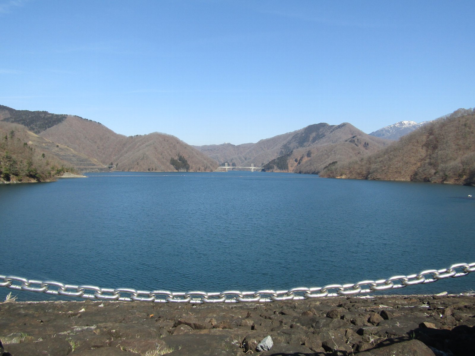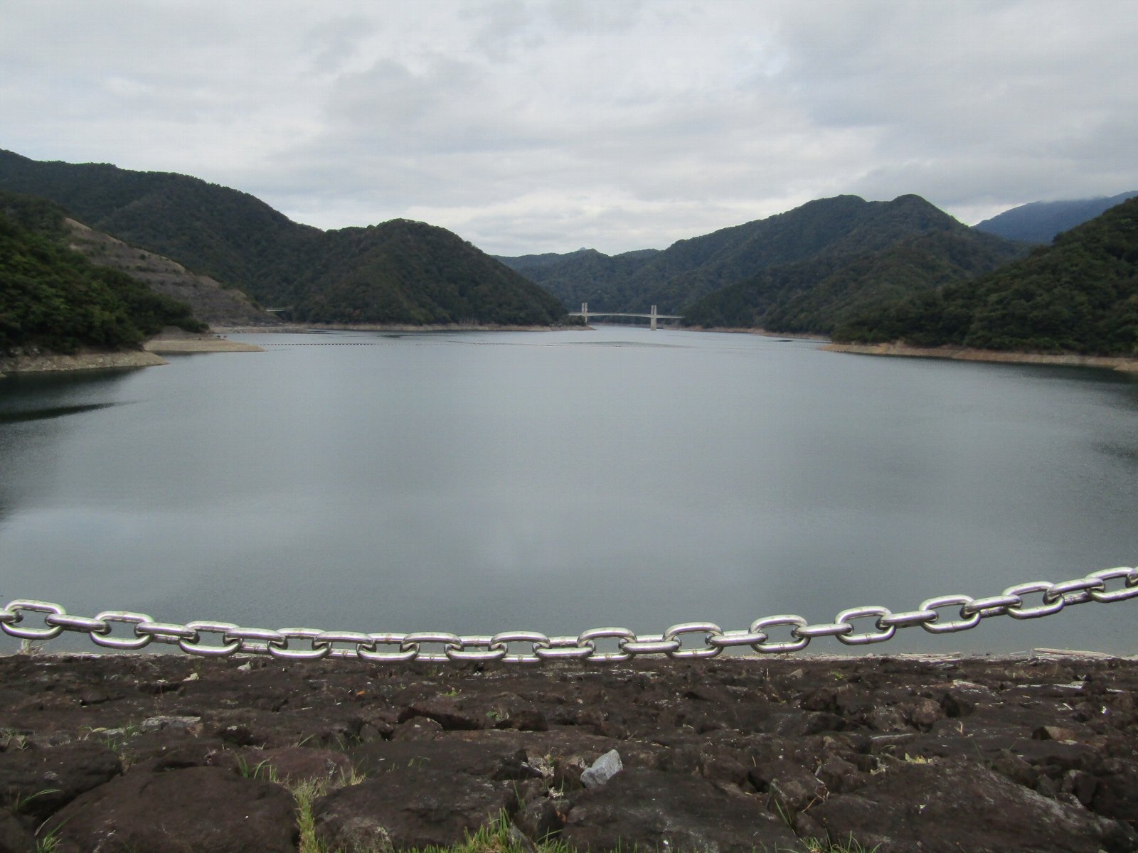 貯水池横断橋(徳之山八徳橋)より堤体方面を望む |