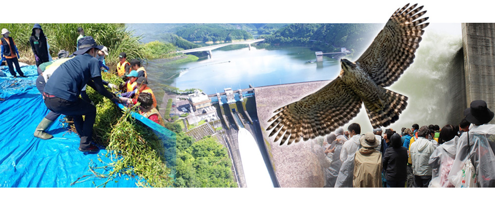 私たち水資源機構は、事業の実施にあたり、環境への負荷の少ない持続的発展が可能な社会の構築や地球環境保全に資することが社会的責務との認識に立ち、水のプロ集団、流域圏の一員として、「環境保全」はもとより、水資源機構が有する施設等の特徴を最大限に活用した「環境創造」に取り組みます。