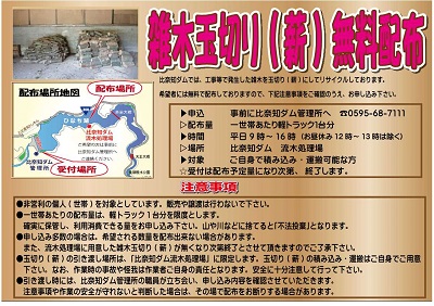 配布希望の方は事前に比奈知ダム管理所までご連絡下さい。