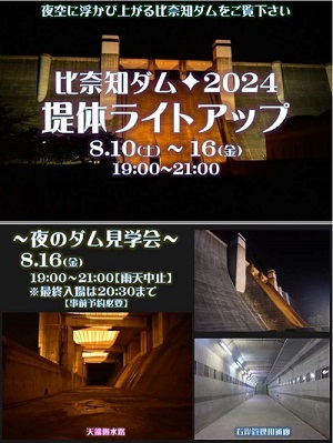 また、昨年台風により中止になった『夜のダム見学会』を8月16日(金)に開催します