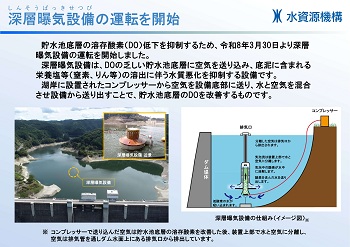 令和8年3月30日より、比奈知ダム貯水池における深層曝気設備の運用を開始しました。
