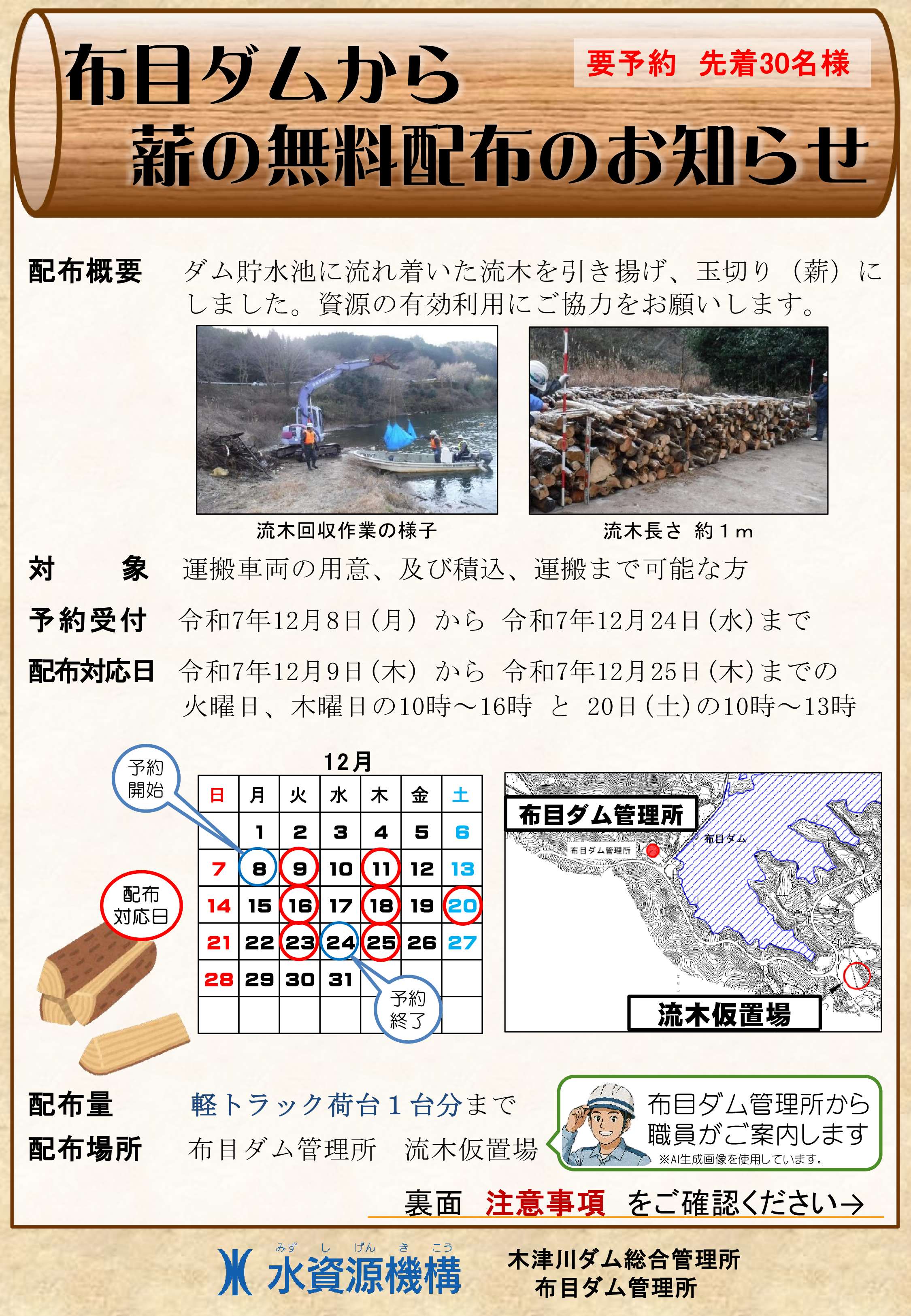 ・やむを得ない事情等により、流木の配布を中止する場合もございます。